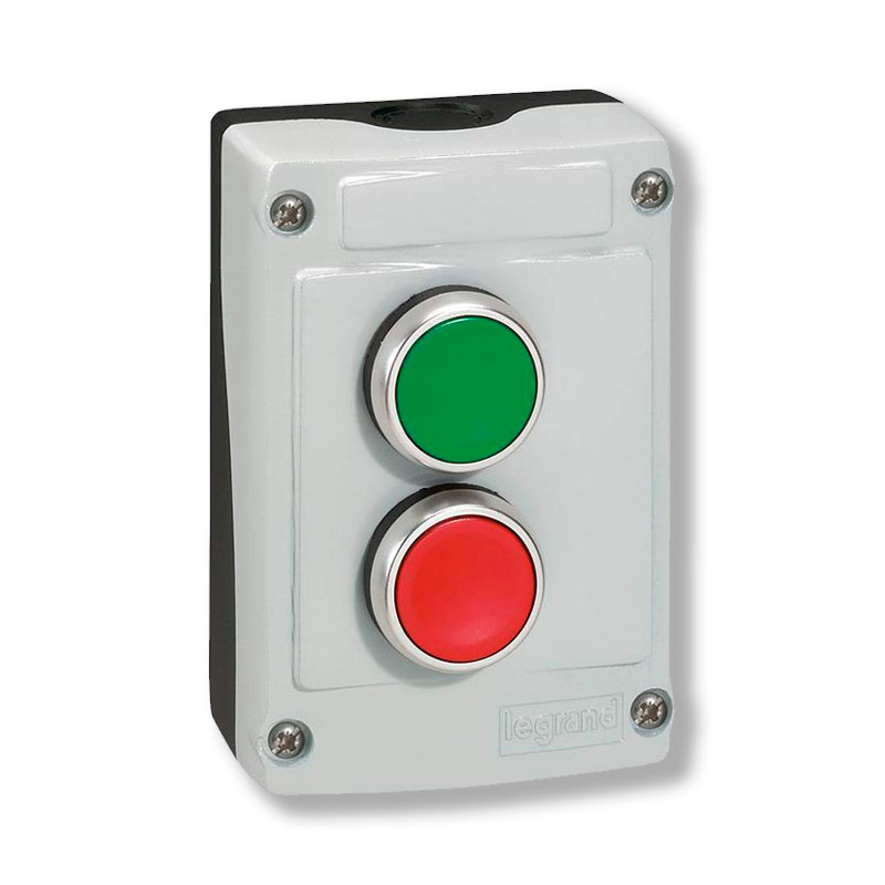 Caja pulsador con 2 pulsadores arranque-parada normalmente abierto / normalmente cerrado, aplicación en tableros.